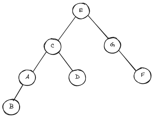 preorder: E C A B D G F postorder: B A D C F G E 一种可能的二叉树拓扑图:
