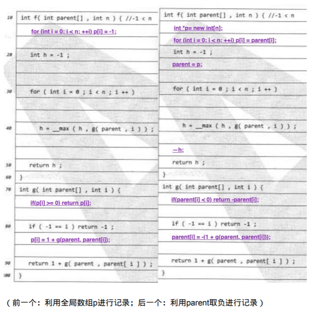 以下代码中的 int parent[0,n) 是采用父节点表示法存储的任意一棵有根的多叉树(未必有序)。