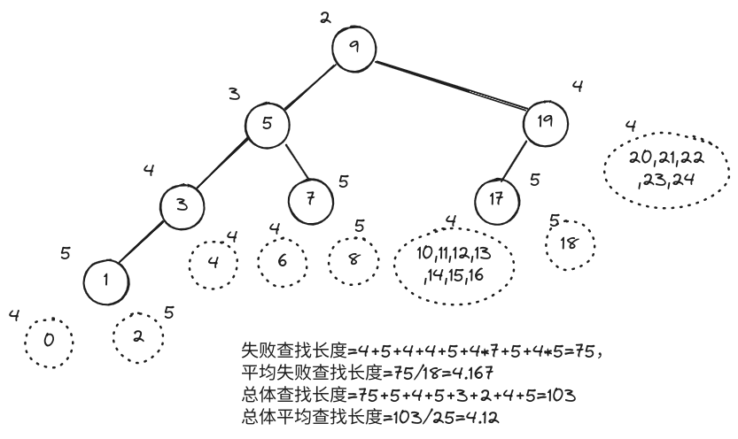 习题 2-18 :2-18 binSearch 查找长度分析 这个结论适用于二分查找 A、B、C 和 FibSearch。
