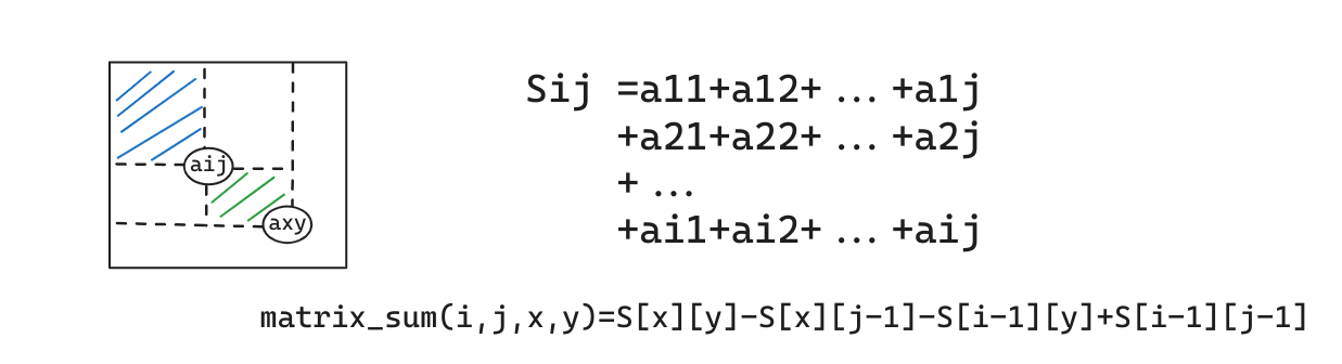 #include <iostream>using namespace std;const int N = 1010;int main() { int n, m, q; cin >> n >> m >> q; int arr[N][N], sum[N][N] = {0}; for (int i = 1; i <= n; i++) { for (int j = 1; j <= m; j++) { cin >> arr[i][j]; sum[i][j] = arr[i][j] + sum[i][j - 1] + sum[i - 1][j] - sum[i - 1][j - 1]; } } int x1, x2, y1, y2; for (int i = 0; i < q; i++) { cin >> x1 >> y1 >> x2 >> y2; cout << sum[x2][y2] - sum[x2][y1 - 1] - sum[x1 - 1][y2] + sum[x1 - 1][y1 - 1] << endl; } return 0;}