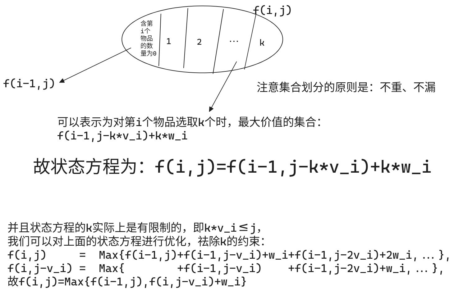 - 对于每种物品,我们将它看作若干个子问题来处理,每个子问题对应物品的一部分数量。