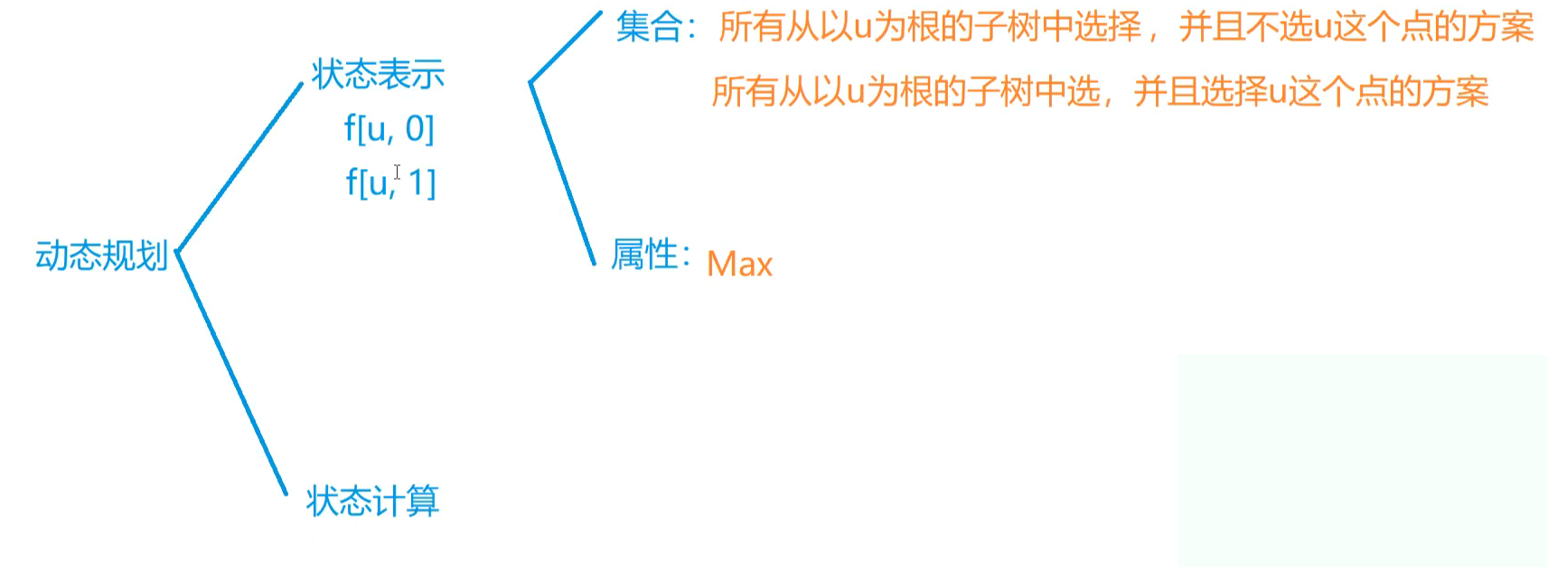 int f[N][2]; // f[u][0]表示所有从以u为根的子树中进行选择,并且不选u这个点的方案的最大快乐指数之和;f[u][1]则为选择该点的方案;