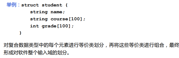 - 对于复合数据类型,我们要考虑输入数据的所有属性的合法、非法取值: