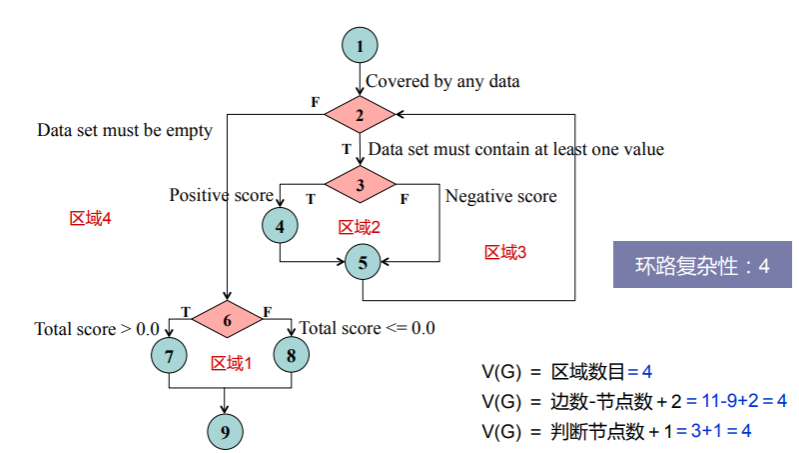 - 计算环路复杂度有三种方法,且计算结果是一致的;