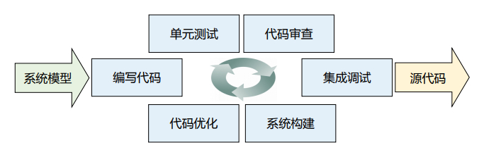 - 概括地说是将软件设计转换成程序代码,这是一个复杂而迭代的过程,要求根据设计模型进行程序设计以及正确而高效地编写和测试代码
