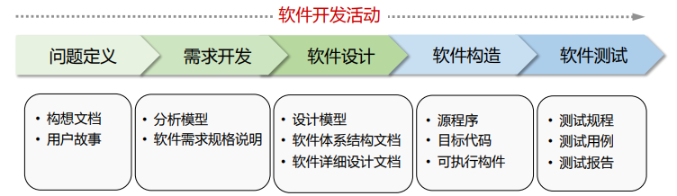 为了获得高质量软件的一系列活动,每一项活动都会产生相应的中间产品: