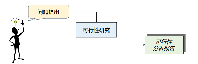 - 人们通过开展技术探索和市场调查等活动,研究系统的可行性和可能的解决方案,确定待开发系统的总体目标和范围