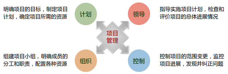 - 为了使软件项目能够按照预定的成本、进度、质量顺利完成,而对成本、人员、进度、质量和风险进行控制和管理的活动