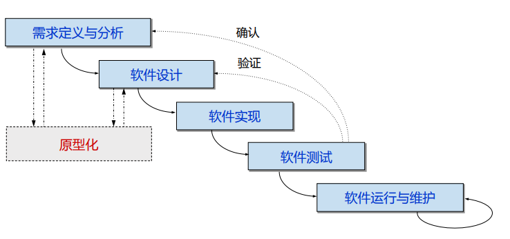 既然瀑布模型只有到测试阶段才能验证是否符合客户需求,那么我们可以先做一个软件雏形,不断地让客户体验、使用,让他给出体验结果,并逐步地修缮,直到最终得到完整的软件: