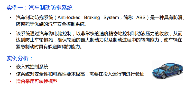 例如汽车制动防抱死系统,就比较适合可转换模型来构建: