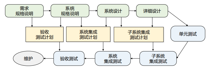 - 检查和验证所开发的系统是否符合客户期望,主要包括单元测试、子系统测试、集成测试和验收测试等活动