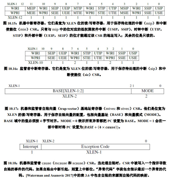 八个控制状态寄存器(CSR)是机器模式下异常处理的必要部分: