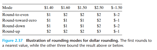 - Round-to-even rounding can be applied even when we are not rounding to a whole number. We simply consider whether the least significant digit is even or odd. For example, suppose we want to round decimal numbers to the nearest hundredth. We would round 1.2349999 to 1.23 and 1.2350001 to 1.24, regardless of rounding mode, since they are not halfway between 1.23 and 1.24. On the other hand, we would round both 1.2350000 and 1.2450000 to 1.24, since 4 is even.