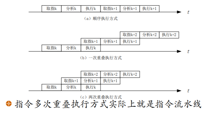 - 如果取指令、分析指令、执行指令的时间都相等,每段的时间都为 t,则 n 条指令所用的时间为: