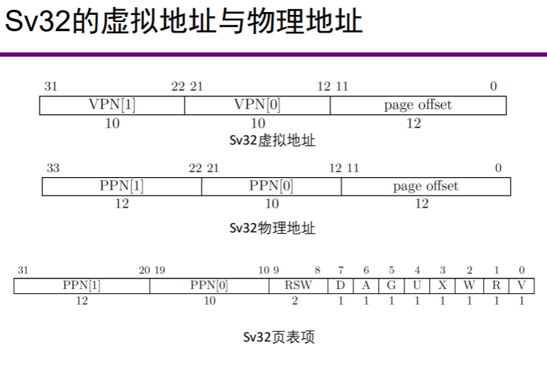 图 10.10 显示了 Sv32 页表项(page-table entry,PTE)的布局,从右到左分别包含如下所述的域: