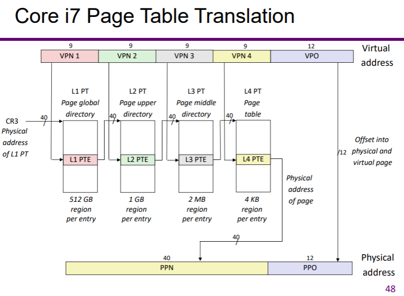 pte.r = 1orpte.x = 1, go to step 5. Otherwise, this PTE is a pointer to the next level of the page table. Leti = i − 1. Ifi < 0, stop and raise a page-fault exception corresponding to the original access type. Otherwise, leta = pte.ppn × PAGESIZEand go to step 2.- A leaf PTE has been found. Determine if the requested memory access is allowed by the