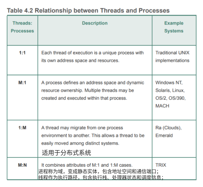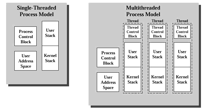 - 多线程应用==无法利用多处理器技术的性能==,一个进程中只有一个线程可以获取处理器,即便在进程内实现多道程序设计;