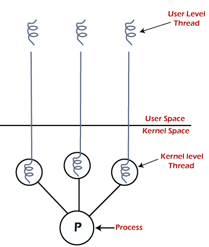 - 管理线程的所有工作都由用户空间的应用程序完成,==线程对内核透明==;
