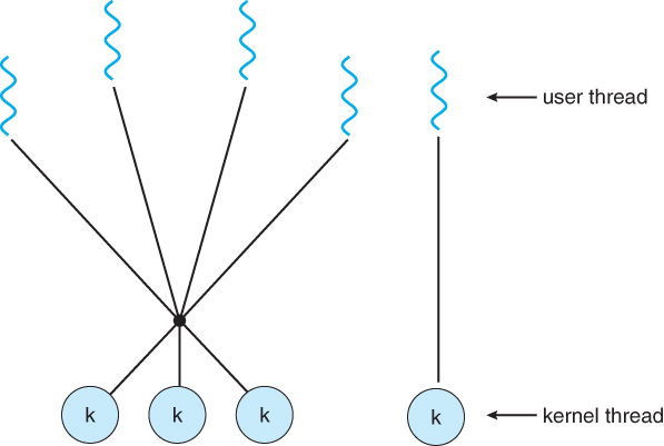 - 应用程序通常以单个线程开始,后续其它线程通过调用线程库派生获得;