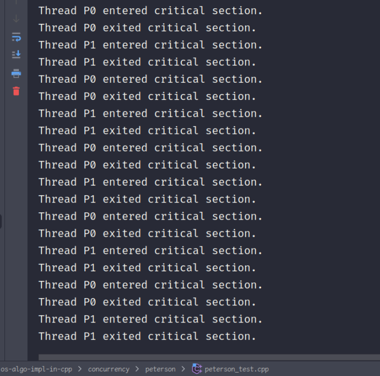 std::cout << "Thread P0 exited critical section." << std::endl;