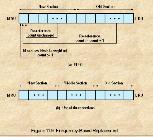 - 新区够大时,短时间重复访问的块的计数器不变化;发生未命中时换出不在新区中的计数最少的块;