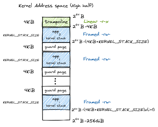 它们和之前一样仍是基于 build.rs 生成的 link_app.S 给出的符号来确定其位置,并实际放在内核的数据段中。 ==loader 模块中原有的内核和用户栈则分别作为逻辑段放在内核和用户地址空间中,我们无需再去专门为其定义一种类型==。