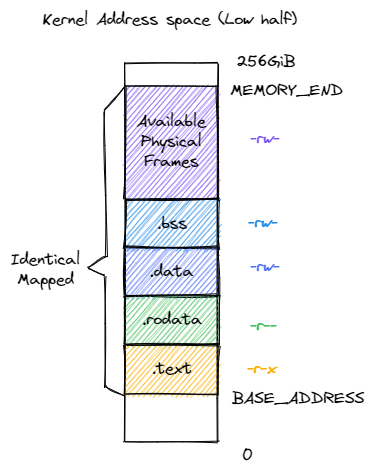 Identical表示上一节提到的恒等映射方式;- 恒等映射方式主要是用在启用多级页表之后,内核仍能够在虚存地址空间中访问一个特定的物理地址指向的物理内存。