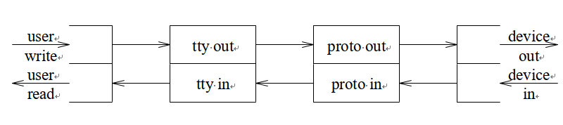 在具体实现上,当设备打开时,流中的两个末端管理的内核模块自动连接;中间模块是根据用户程序的请求动态附加的。为了能够方便动态地插入不同的流处理模块,这些中间模块的读写接口被设定为相同语义。