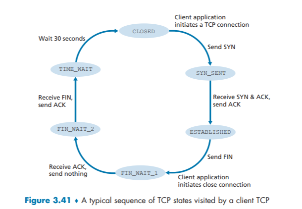 - The TCP client creates a socket and sends a connection establishment request segment with the lines: