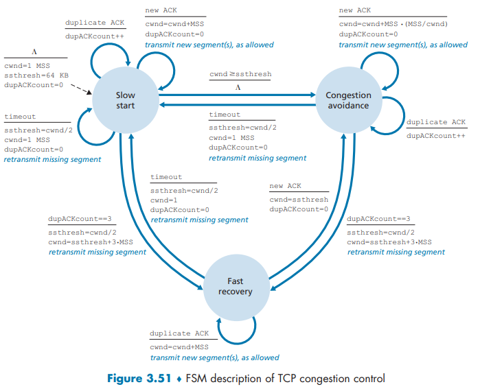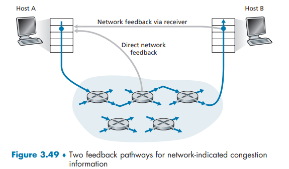 Since the initial standardization of slow start and congestion avoidance in the late 1980’s [RFC 1122], TCP has implemented the form of end-end congestion control that we studied in Section 3.7.1: a TCP sender receives no explicit congestion indications from the network layer, and instead infers congestion through observed packet loss.