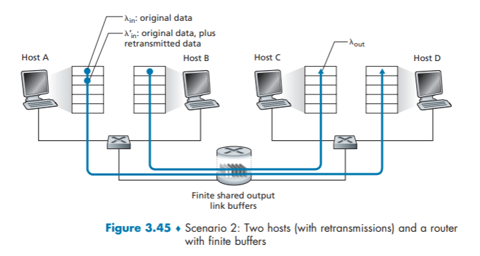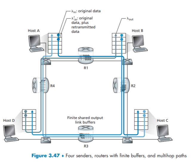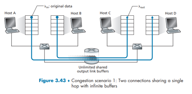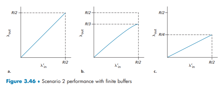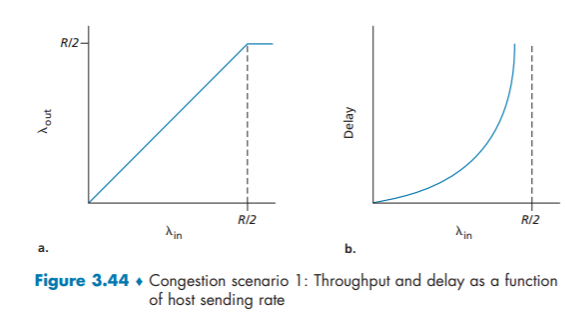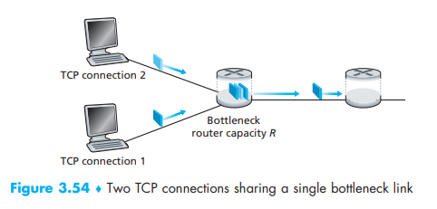 Let’s consider the simple case of two TCP connections sharing a single link with transmission rate R, as shown in Figure 3.54.
