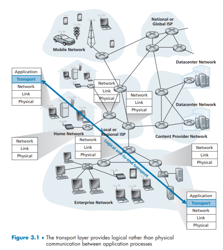 - 传输层服务:将主机-主机的通信细分为进程间的逻辑通信