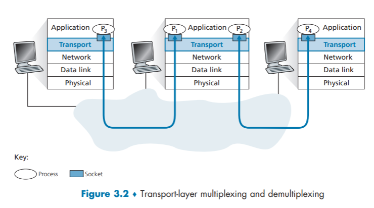 - 由图可以见得:接收方主机的运输层实际上并没有直接将数据交付给进程,而是将数据交给了一个 socket ;
