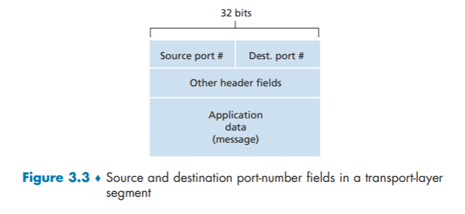 - 用该端口号将报文段定位给套接字