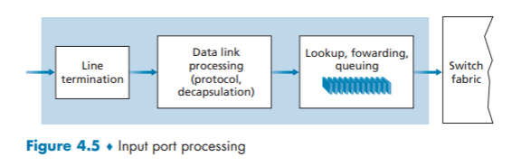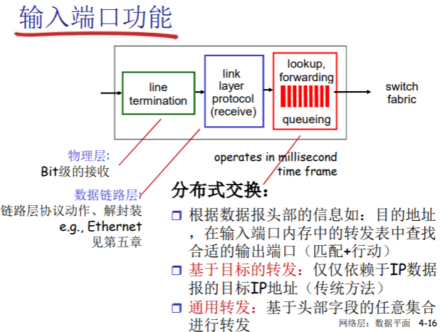- 在输入端口执行查找功能(通过查询转发表决定路由器的输出端口)