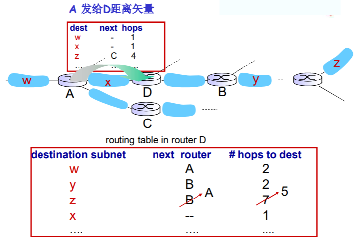 每台路由器都由一个路由选择组件,用于与其它路由器中的路由选择组件通信,以计算其转发表的值。
