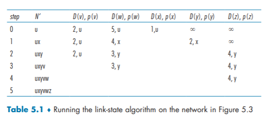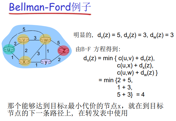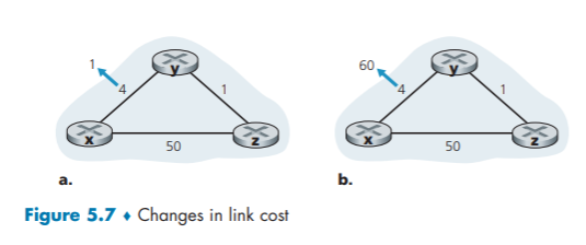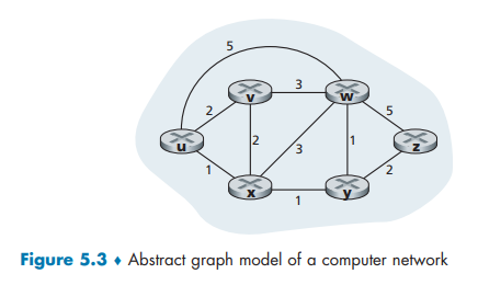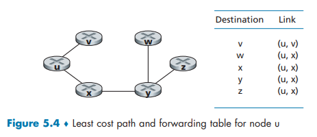 - In Figure 5.3, for example, the least-cost path between source node u and destination node w is (u, x, y, w) with a path cost of 3.