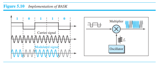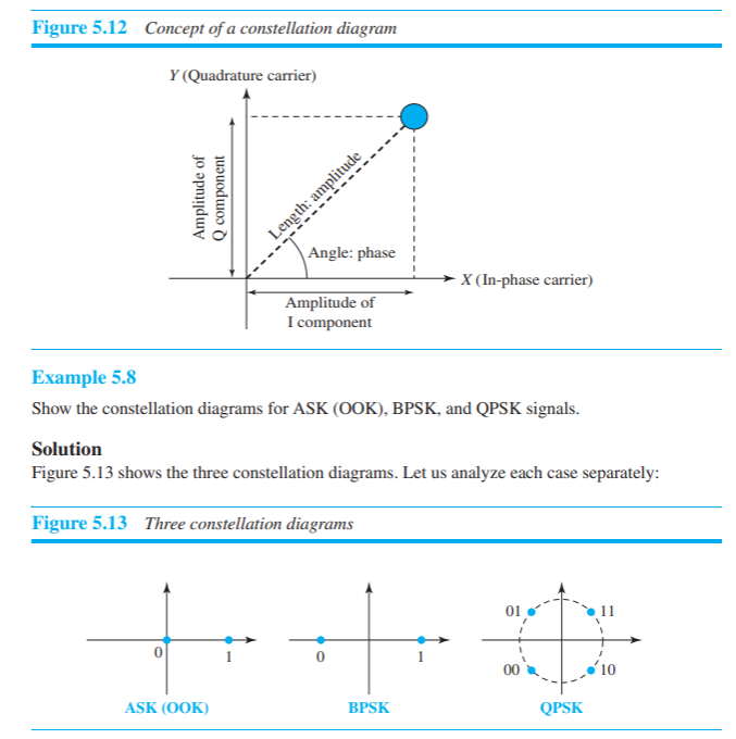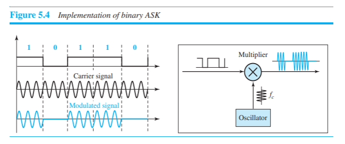 调制解调器modem,源于信号调制器modulator(从二进制数据生成带通模拟信号)和信号解调器demodulator(将调制信号中恢复为二进制数据)。典例图9.7及上方解释