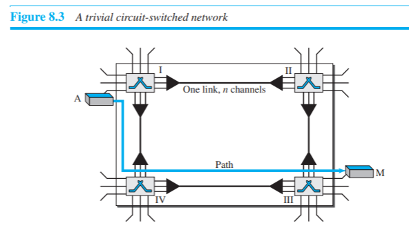 - 多点连接multipoint connection(多站连接multidrop connection):两台以上设备共享单一链路的情形。通道的能力在空间或时间上共享。
