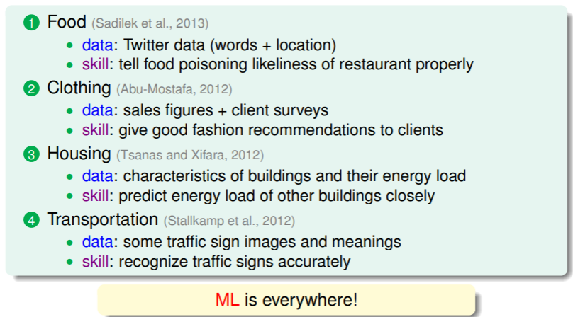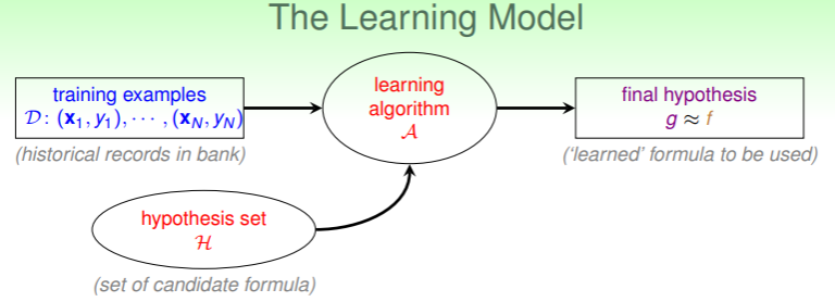 - 所谓机器学习的模型,就是学习算法 和假设集 的结合。