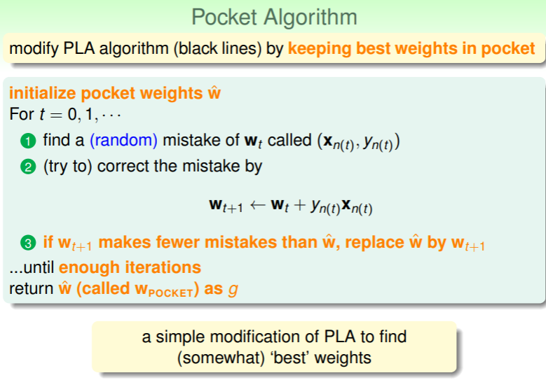 如何解决?捡西瓜丢芝麻策略!(英语中通常称为 Pocket Algorithm)—— 保持最佳的 在手中,如果下一轮 的结果反而导致正确率下降,那么就舍弃之: