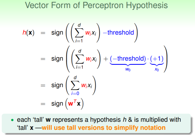 - 这里为了将 threshold 纳入向量运算中,延伸一个第 0 维的分量 和 。