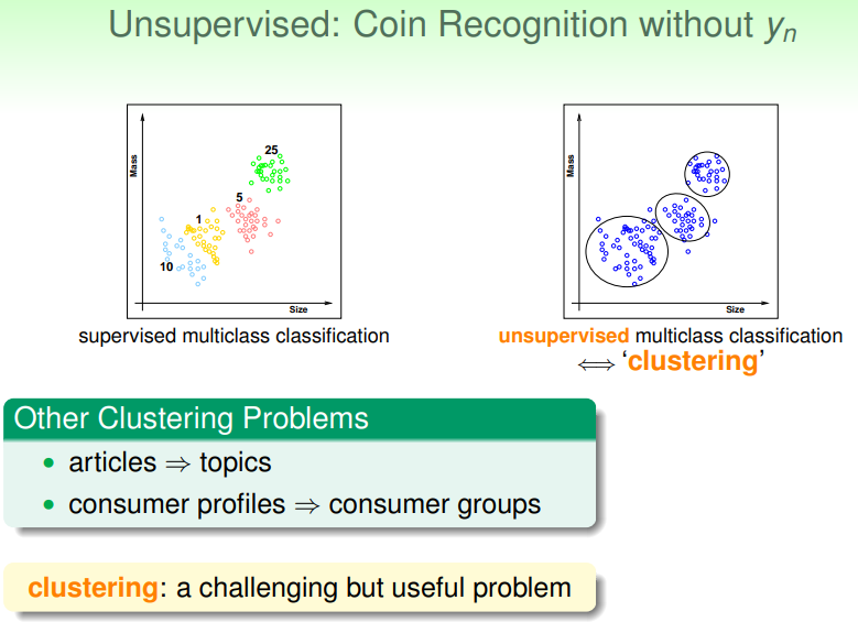 - 如果判断币值的问题中,不给出样本点的 label ,则如下右图: