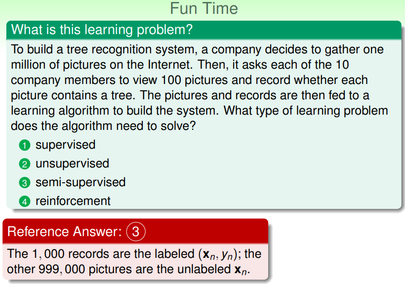 半监督式学习:对部分样本给出 label ,而大多数样本都不给出,让模型根据给出 label 的样本自行学习,从而提高对其他样本的判断准确性: