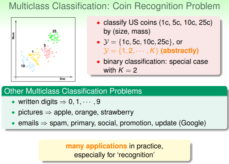 对一个问题的判断有 K 种,是对二元分类问题的扩展,称为多元分类问题: