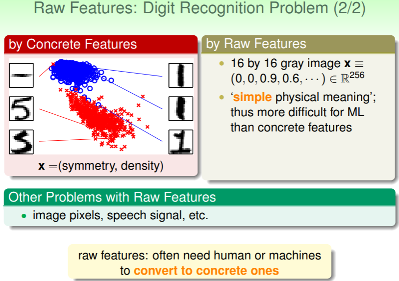 - 更多的 raw features 案例:图像识别、语音识别等,都是难以对数据逐个提前打好标签的;