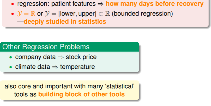 通过已有数据对未来进行合理的预测,称为回归分析(Regression):例如对于某一疾病,已知大量的其他病人的痊愈时间,那么可以对当前病人的痊愈时间作出合理的估计: