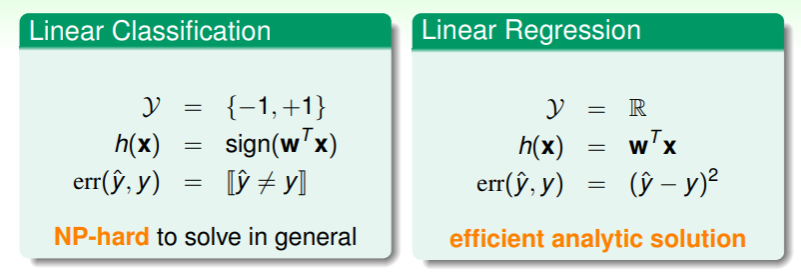 它们看起来既有区别,又有联系。其中一个重要的区别是,线性回归的计算效率很高,而线性分类是 NP-hard 的复杂度,那么能否使用线性回归来运用到线性分类中呢?思路如下: