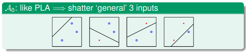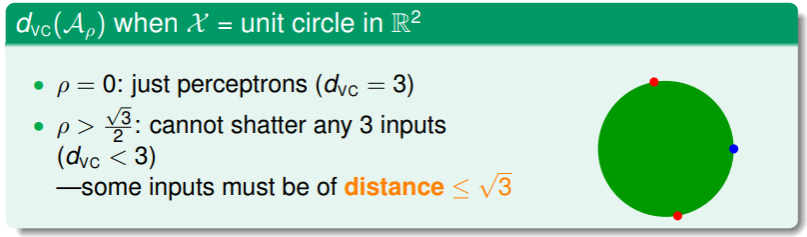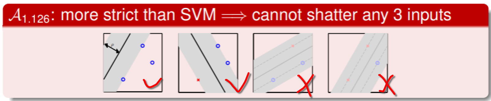 - 这三个点的相互最远距离不超过 ,因此当 时就不存在可以 shatter 三个点的假设;