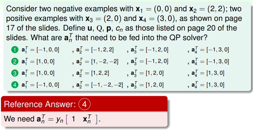 为了求解这个标准问题,我们考虑一种简单情形:现有四个样本点,分别特征向量和标签为: